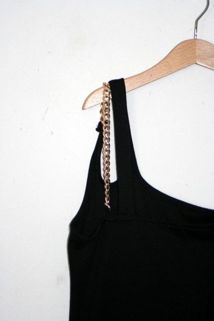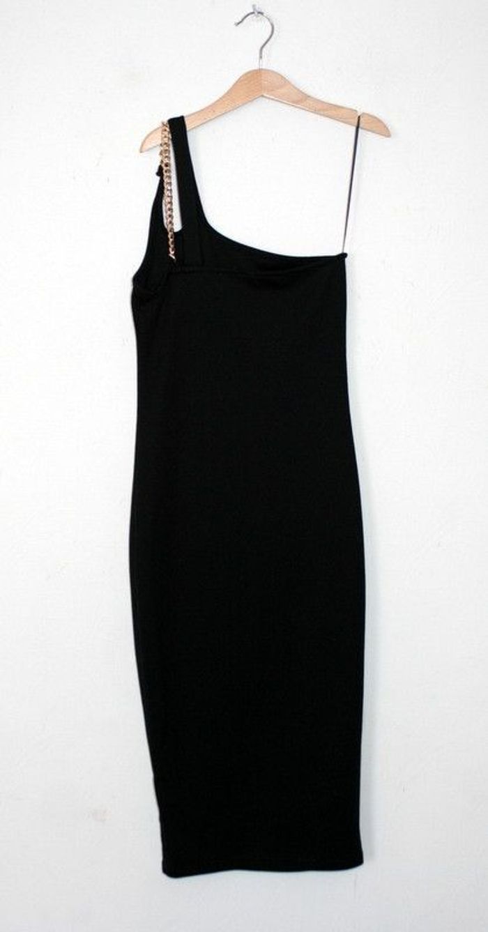 Robe noire longue mono bretelle, de chez Pimkie, taille XS, 100cm de long, 31cm d'aisselle à aisselle, 97% polyester / 3% élasthanne, 200g