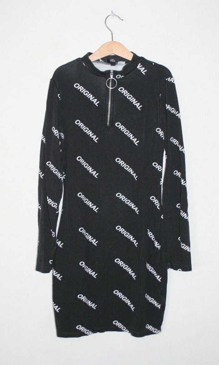 Robe moulante de chez H&M, taille 36, 73cm de long, 31cm d'épaule à épaule, 36cm d'aisselle à aisselle, noir un peu passé par le lavage, 84% viscose / 14% polyester / 2% élasthanne, 290g