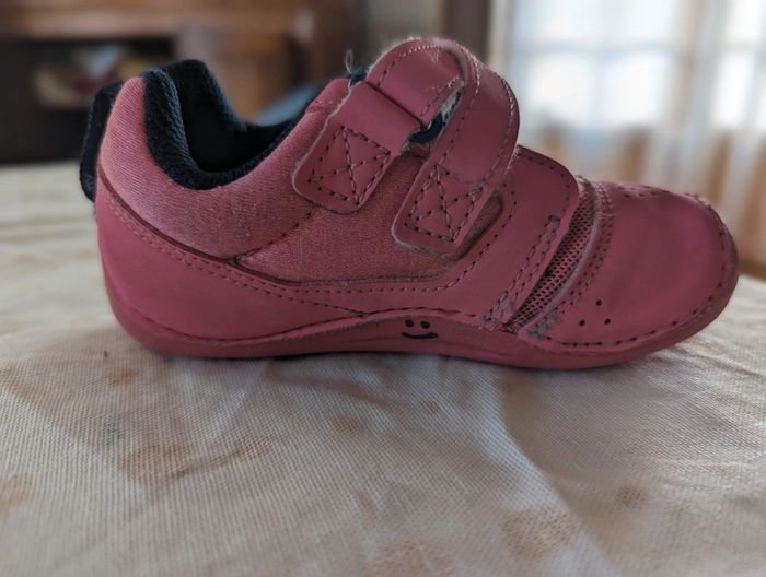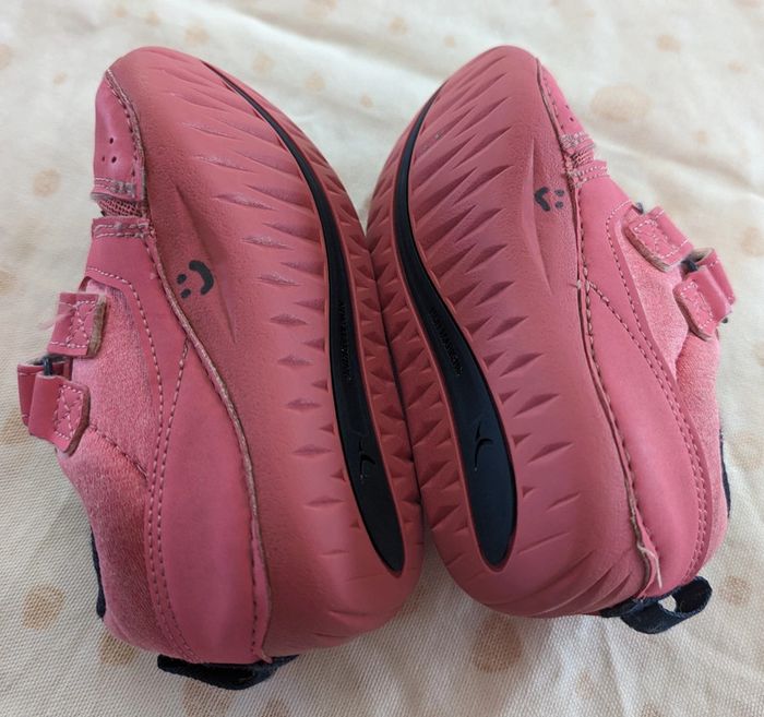 Baskets a scratchs Decathlon taille 24 Portées mais restent en bon état Des smileys dessinés au marqueur sur le côté des semelles pour aider à les mettre seules (dans le bon sens 😅).