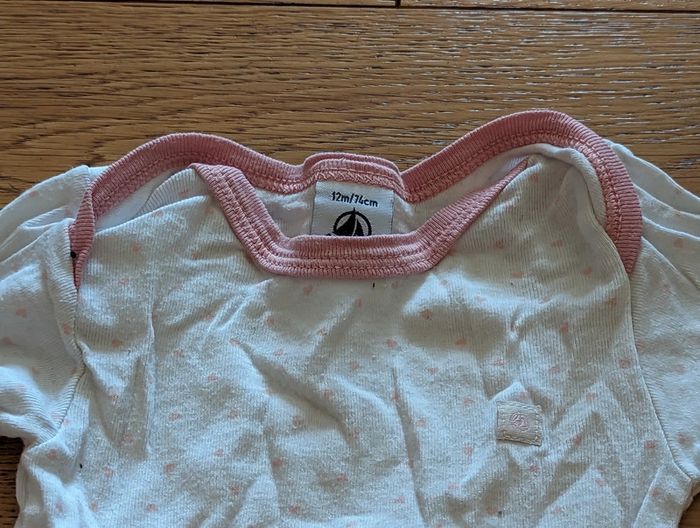 Body blanc avec motifs pois rose Petit bateau taille 12 mois Porté mais bon état #maevafille12mois
