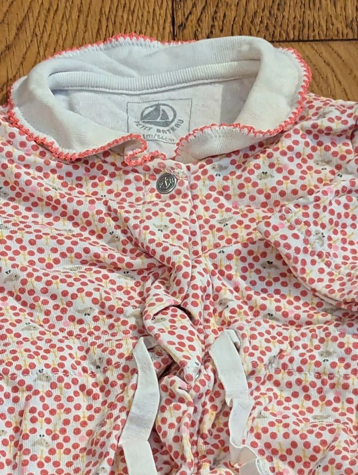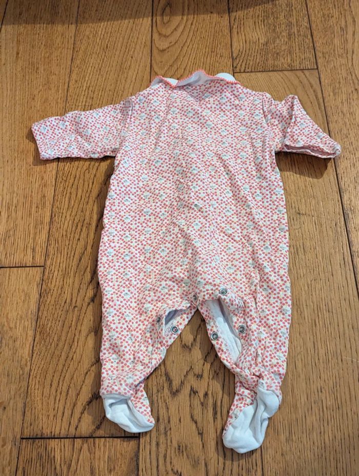 Pyjama fleuri petit bateau Taille 1 mois Très joli avec son col Claudine+ lien de serrage a la taille si besoin Portée mais bon état #maevafille1mois