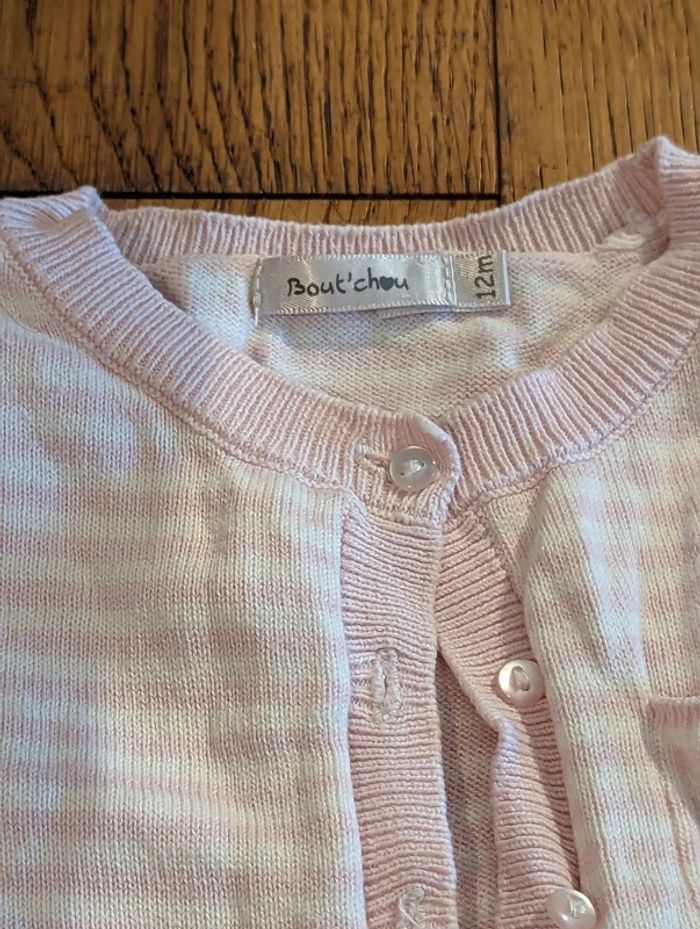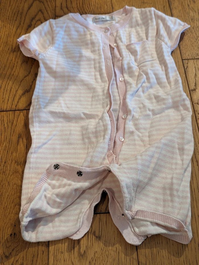 Combinaison en coton, marque Bout'chou Manches courtes Rayée rose et blanc S'ouvre tout le long + pressions en bas pour la couche Très bon état #maevafille12mois