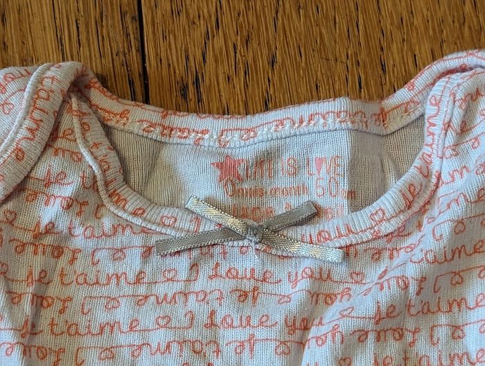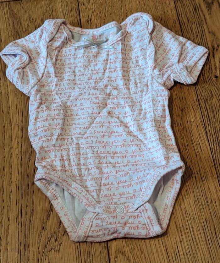 Body naissance Tape a l'oeil Manches courtes Blanc avec des écritures corail Peu porté, très bon état #maevafille1mois