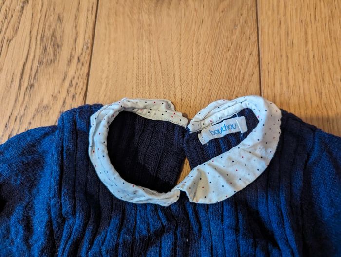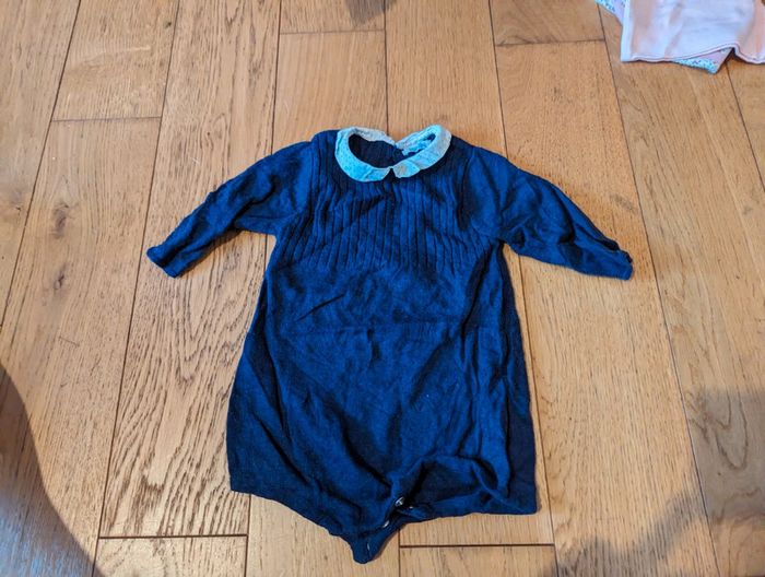 Marque Bout'chou (Monoprix) Taille 3 mois Effet "laine", douce mais reste très légère Marine avec col Claudine blanc Côtelée Pressions sur le bas pour changer la couche Portée mais bon état #maevafille3mois