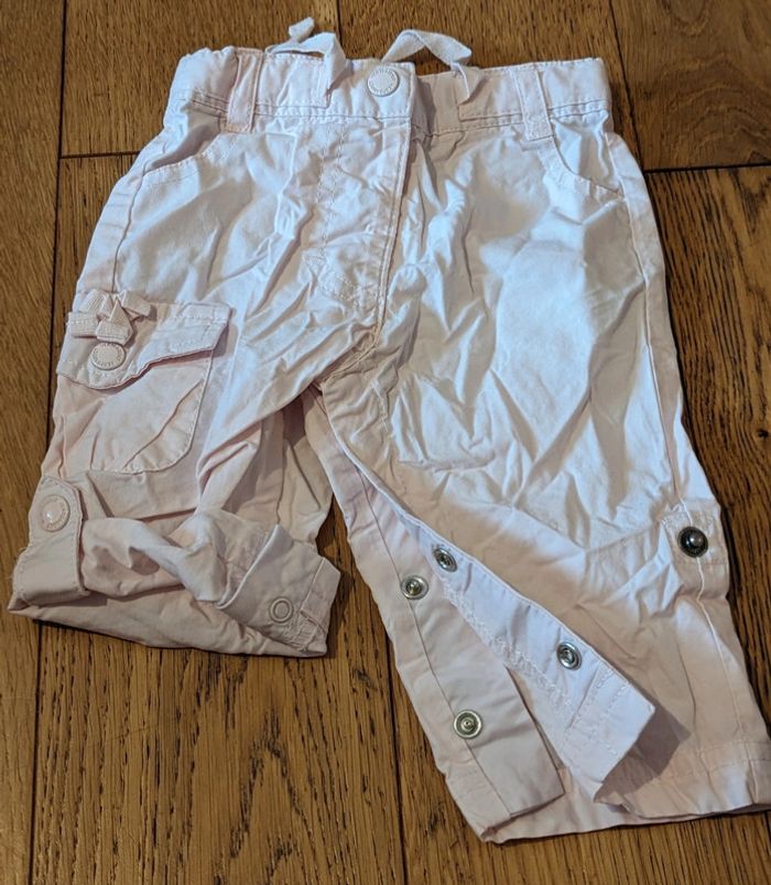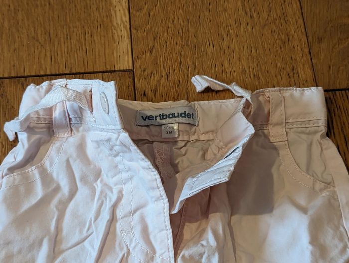 Vert baudet, taille 3 mois Coton léger, rose clair Pantalon qui peut se transformer en pantacourt avec des pressions sur le mollet Boutons pour le serrer a la taille, pour s'adapter à toutes les morphologies + lacet Peu porté, très bon état #maevafille3mois