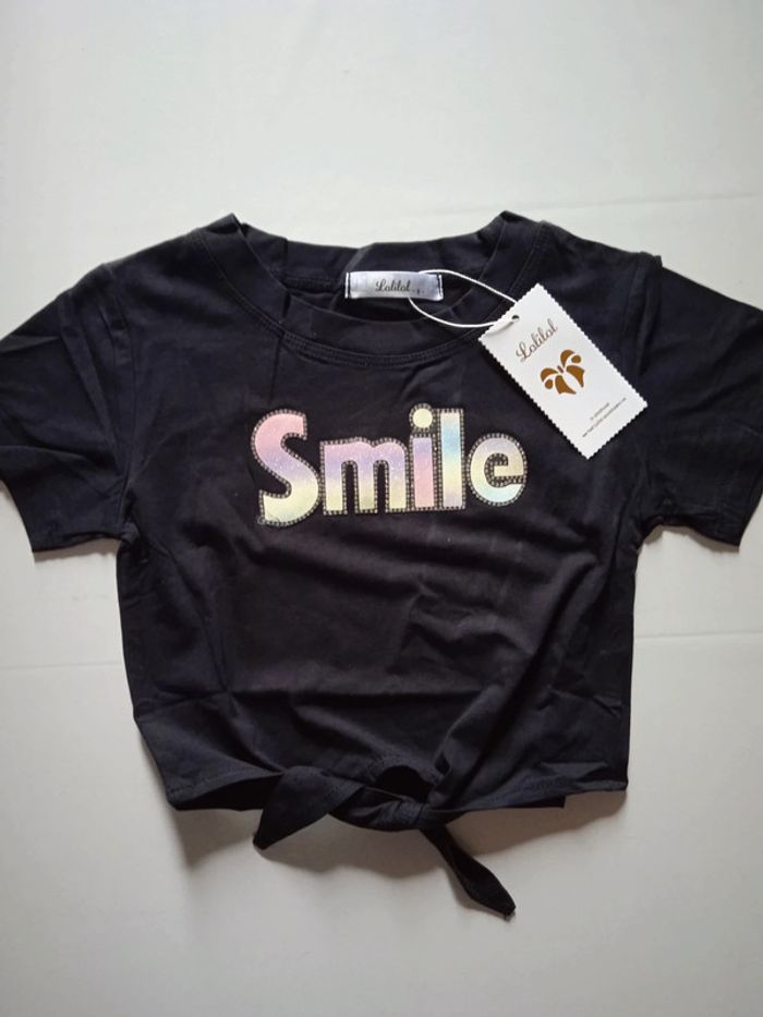 Joli crop top noir imprimé smile. Neuf avec étiquettes D'autres articles similaires dans mon dressing