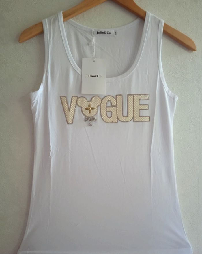 Joli débardeur Vogue blanc avec tête Mickey et bijou Neuf avec étiquettes Existe en noir D'autres articles similaires dans mon dressing