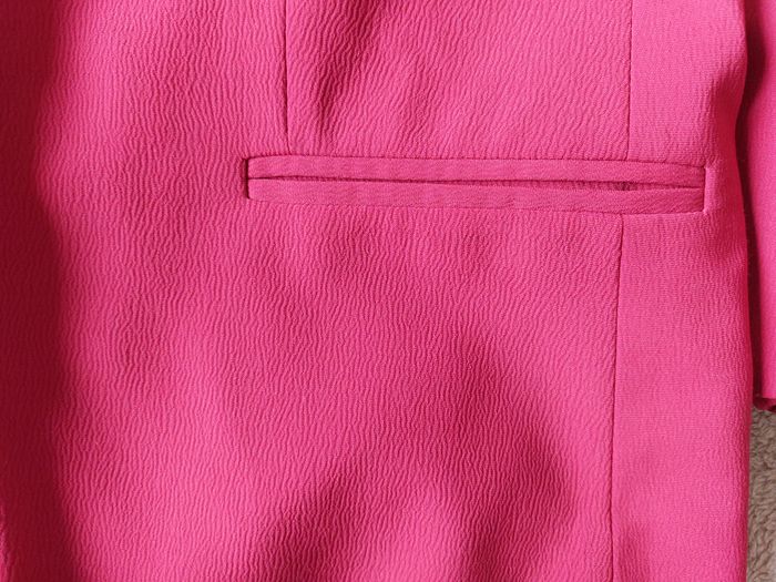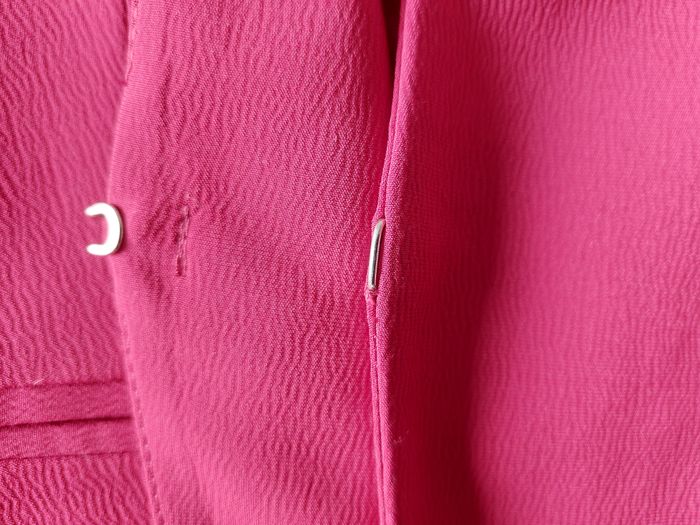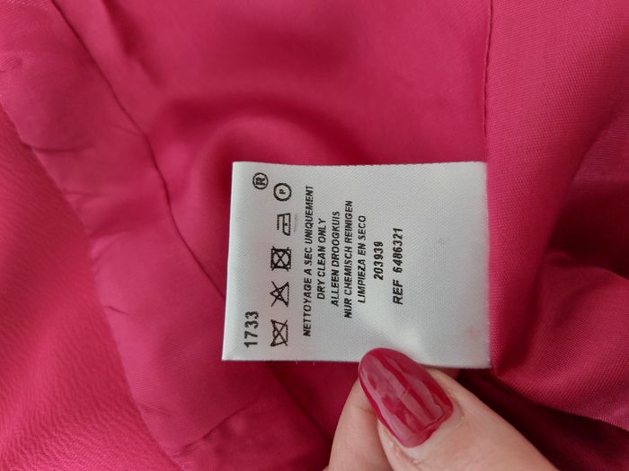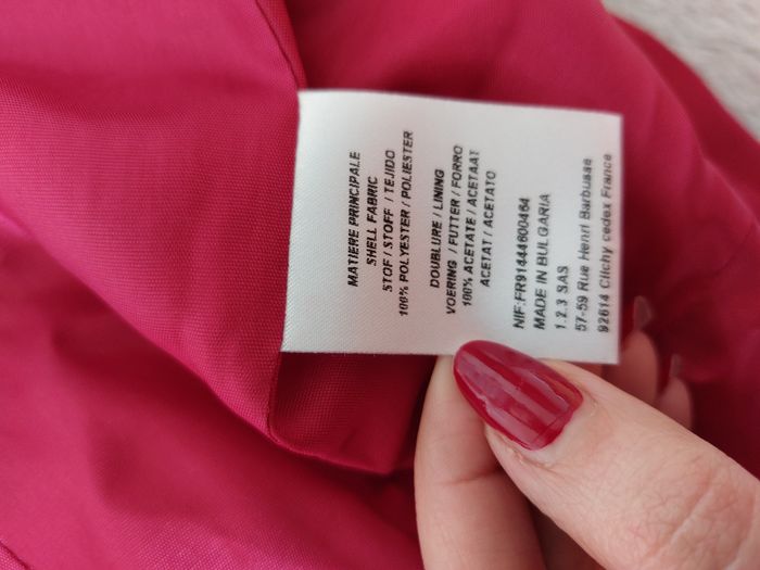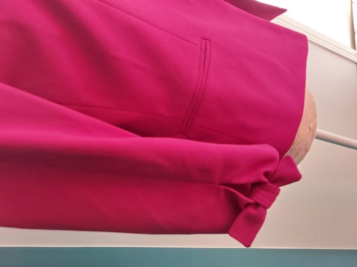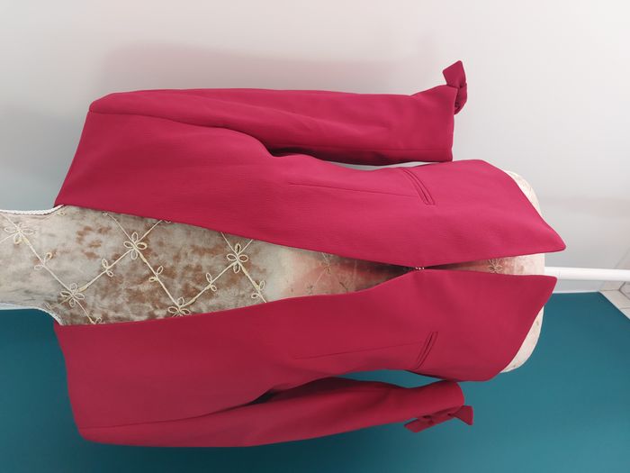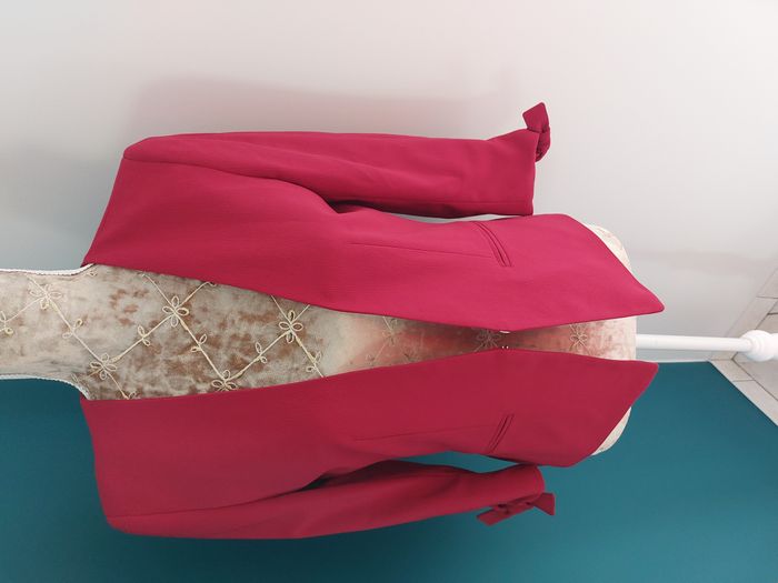 Jolie veste de la marque 1.2.3 aux manches 3/4. Très bon état. Taille 36. Coloris = framboise. Fermeture par crochet. 2 fausses poches. Petites épaulettes. Noeuds au niveau des manches. Composition = 100% polyester, doublure 100% acétate. Fabriqué en Bulgarie. Mesures à plat = Epaules = 39cm environ. Aisselles = 45cm environ. Longueur = 55cm environ. N'hésitez pas à me contacter si vous avez des questions. Je vous répondrai dès que possible.