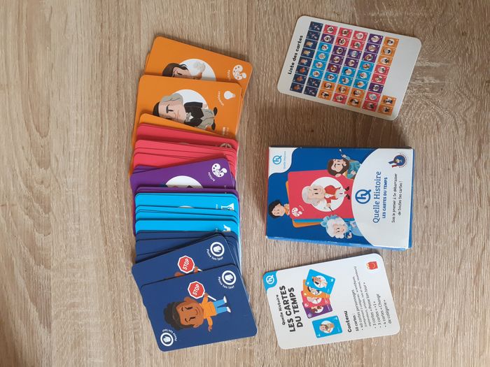 Quelques traces d'usures sur la boite sinon jeu en très bon état. Chaque carte comporte une petit phrase de culture générale