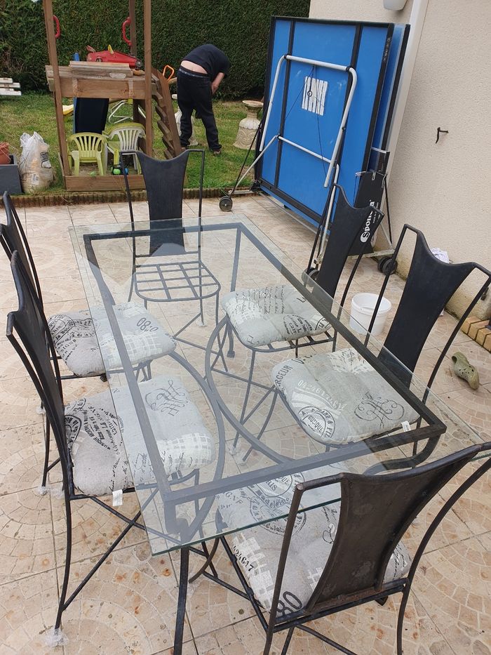 Table en verre et fer intérieur extérieur - photo numéro 1