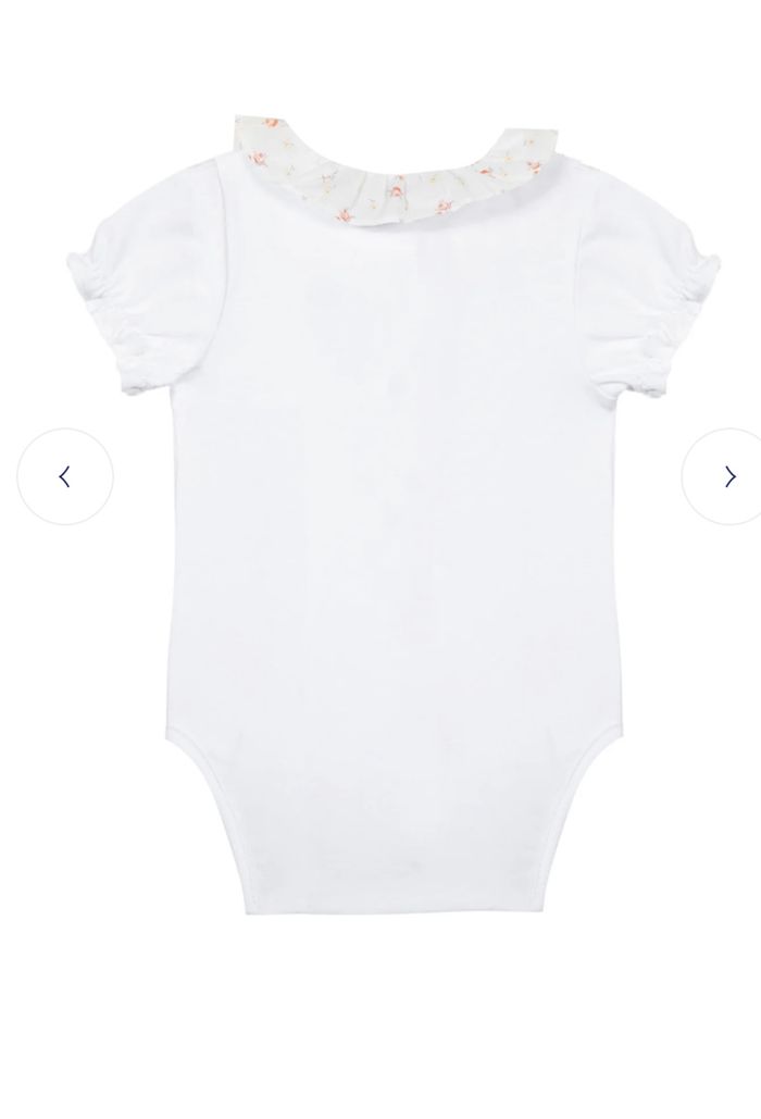 Elégant et raffiné, ce body en jersey accompagnera bébé avec douceur. On craque pour son col volanté orné de jolies broderies fleuries. Le body se pressionne à l'avant et à l'entrejambe pour un habillage facile.