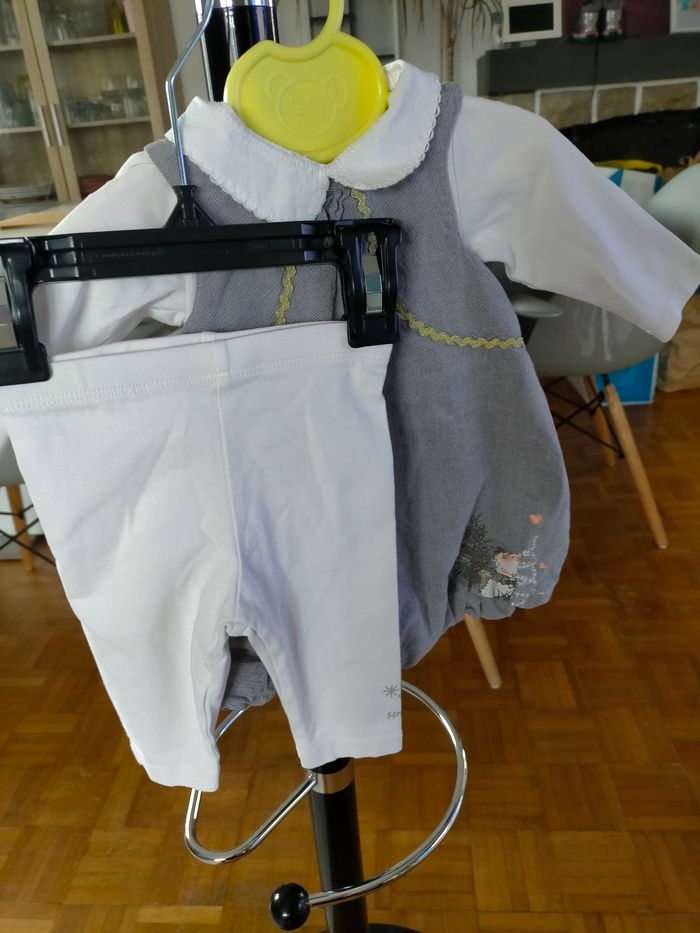 TBE , 3 mois , ensemble 3 pièces ( robe + haut orchestra, legging kimbaloo)