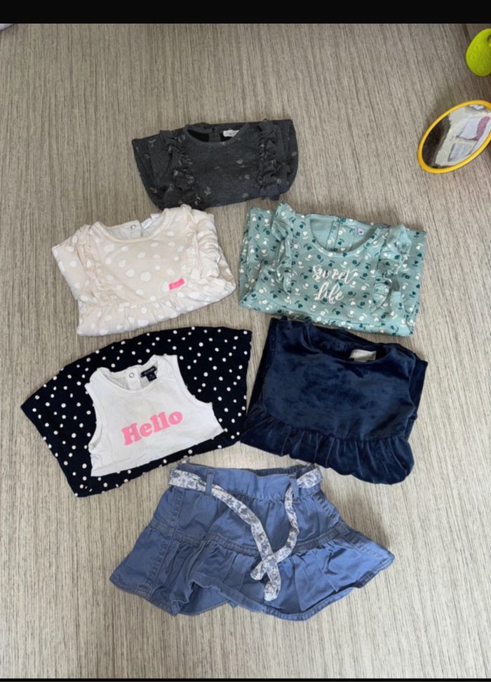 Très bon état taille 9-12 mois 1 jupe, 2 robes et 3 combinaisons