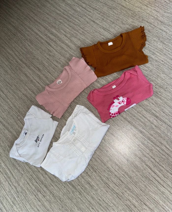 Lot de 4 bodies et 1 chemisier Bon état 6 mois