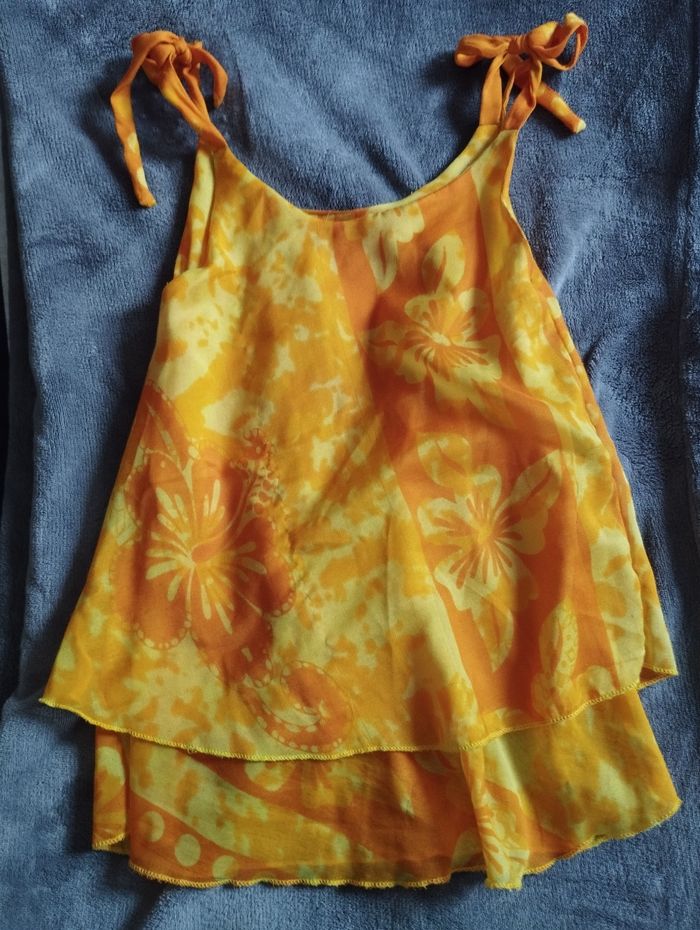 Robe hyper fluide Pas de marque Bretelles réglables car il s'agit d'un noeud donc pas vraiment de taille Je l'ai mis a ma fille pour des 2 et 3 ans