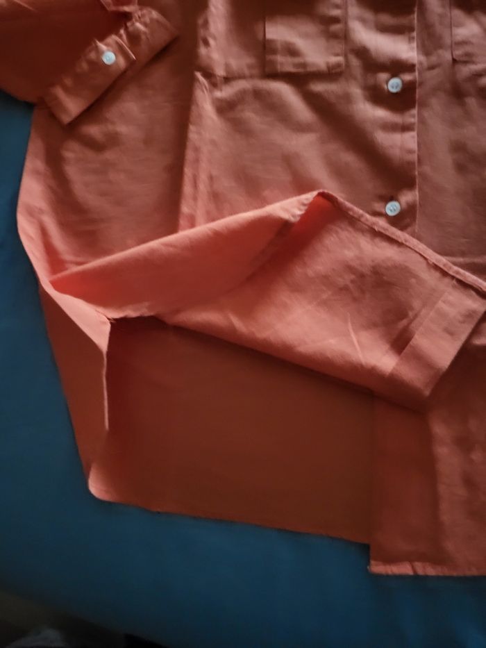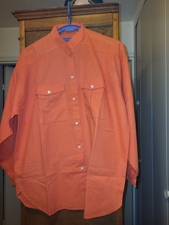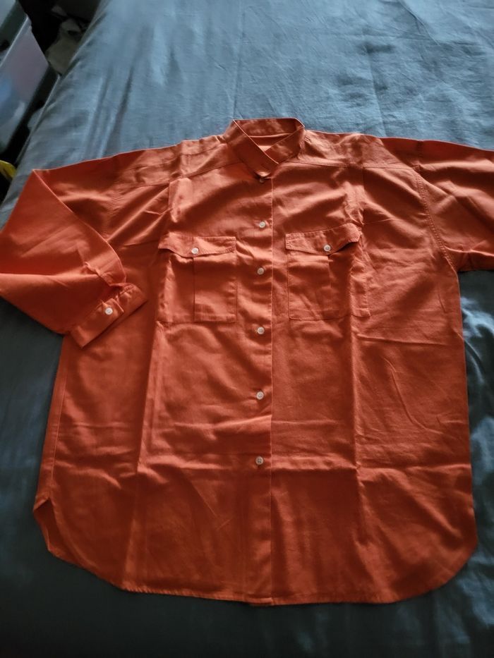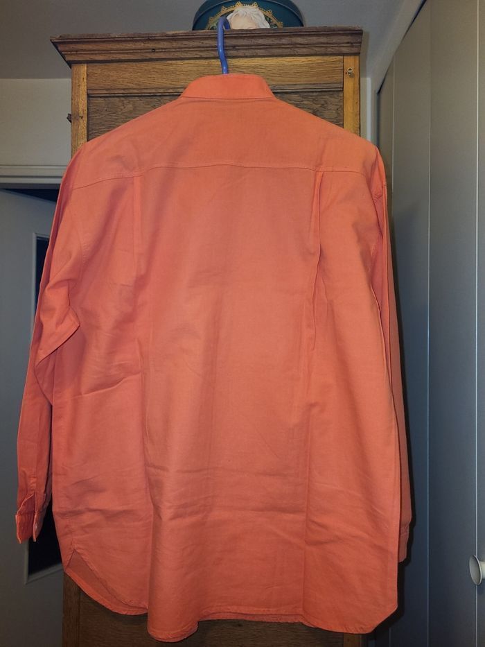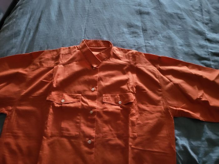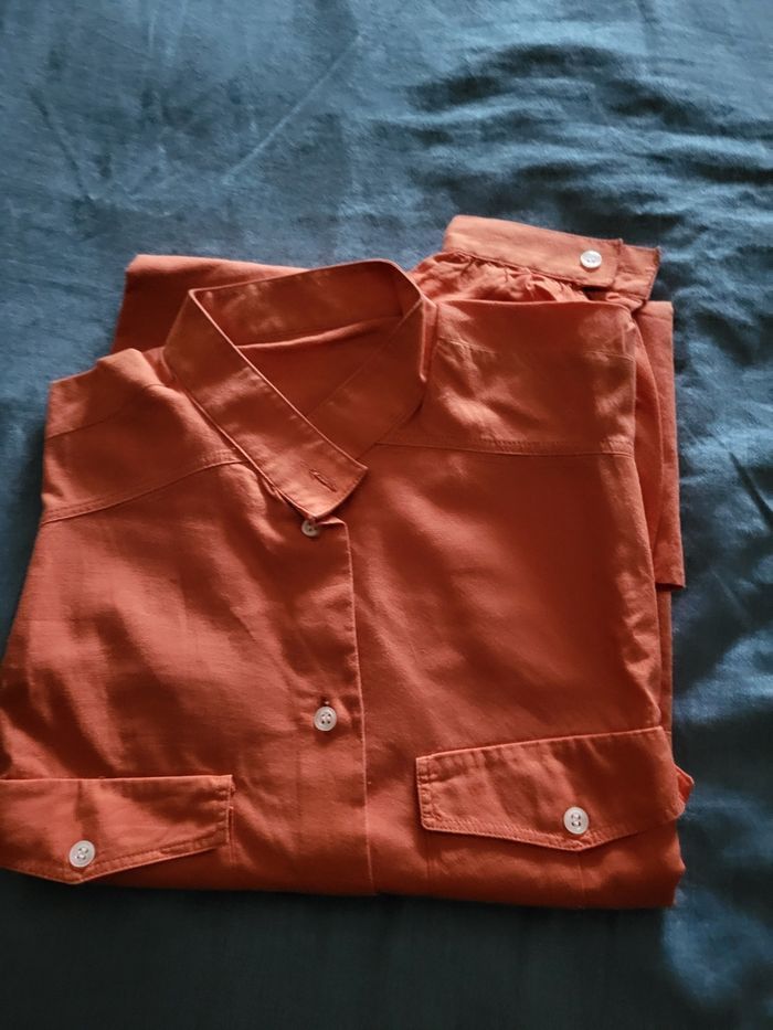 Chemise orange coupe large t 42 .long 70 cm en coton 2 poches poitrine .larg chemise 60 cm .col officier.orange comme photo 2.
