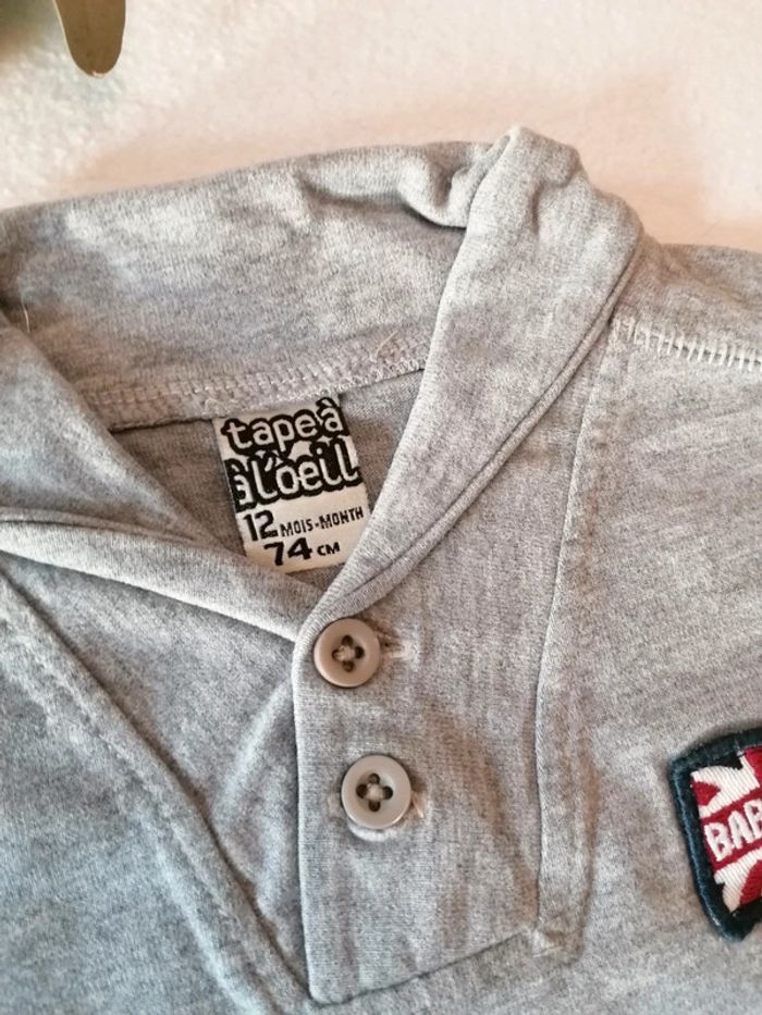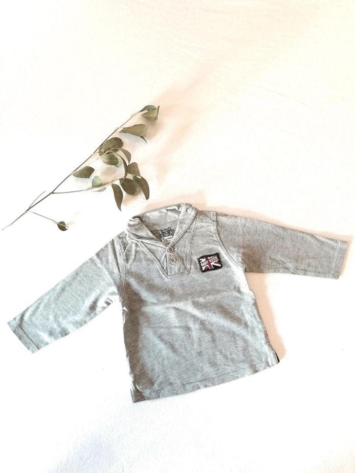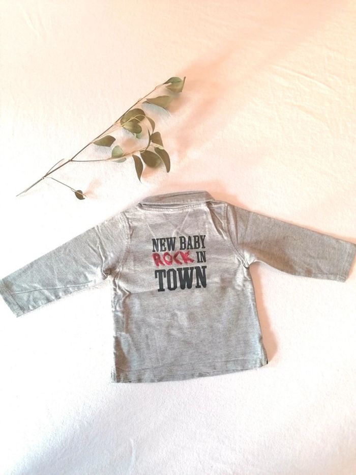 Polo manches longues tape à l'œil TAO 12 mois 74cm Gris 🇬🇧 rock '' new baby rock in town''