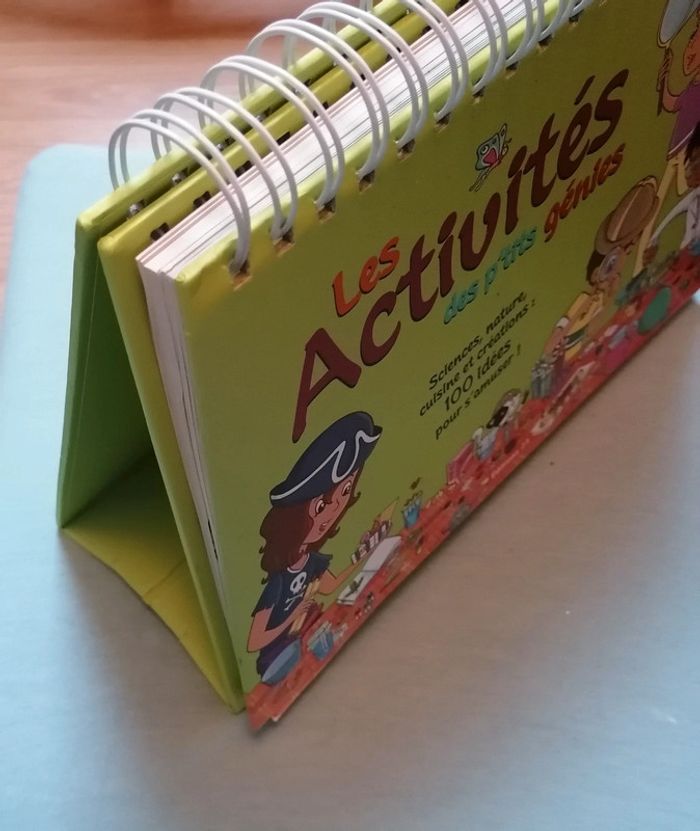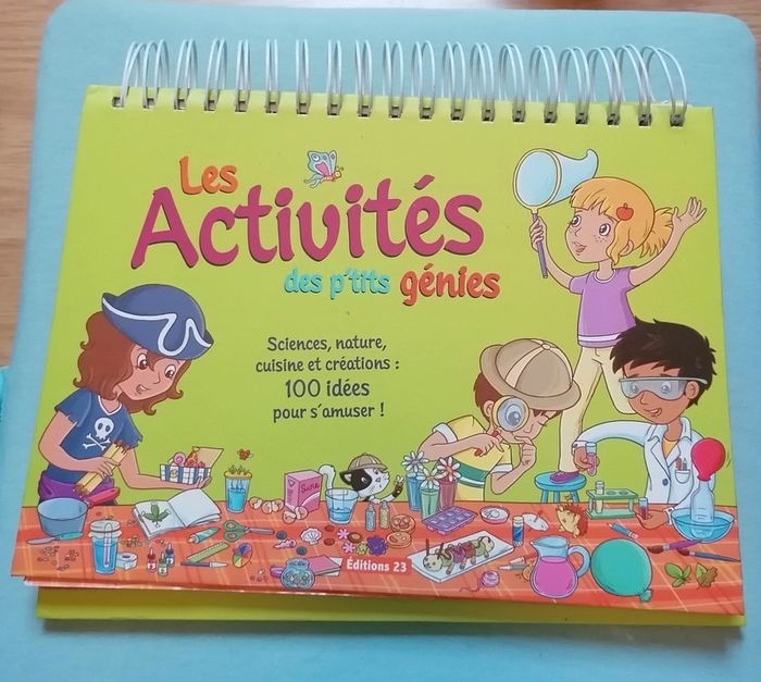 Livre les activités des p'tits génies Édition 23 Valeur neuf 29'50€ Seul une étiquette prénom à l'intérieur de la 1ere page de couverture est présente. Légèrement appuyé sur les anneaux du haut, voir photos.