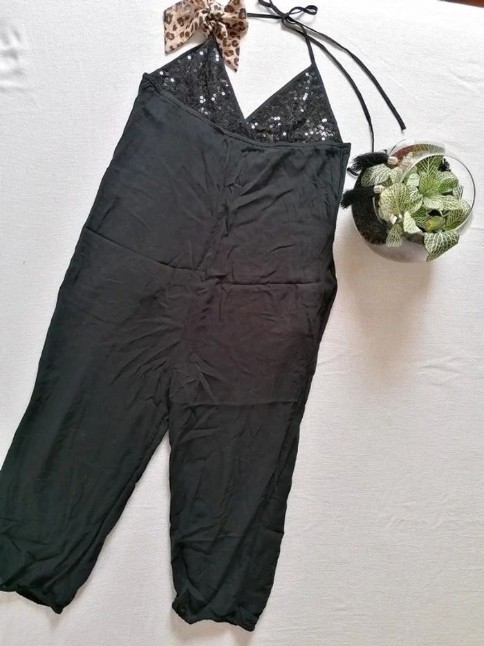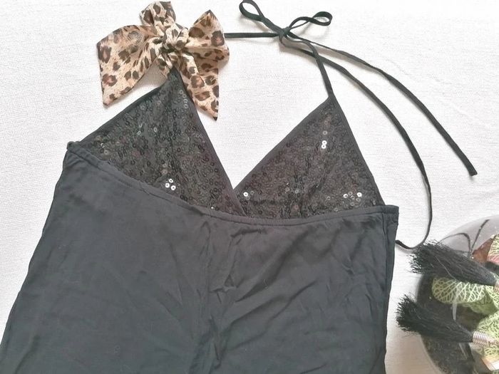 Combinaison noire à sequin sur poitrine Lien à nouer derrière le cou Petit foulard sur lien à lier Marque Undiz taille S en très bon état. Porté 1 fois en soirée d'été 🏖️ #mcz_femme #mcz_femme_autres #undiz #undizs
