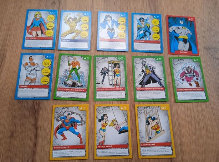 1€ les 10 Au choix: . N° 9 Supergirl . N° 11 Cheetah . N° 20 Zatanna . N° 30 Nightwing . N° 37 Batman . N° 43 Cybord . N° 59 Aquaman astuce "meilleur quotidien" . N° 63 Superman et Wonder Woman astuce "meilleur quotidien" . N° 64 Le Joker astuce "meilleur quotidien" . N° 70 Astuce "meilleur quotidien" . N° 73 Superman astuce "santé" . N° 74 Wonder Woman astuce "santé" . N° 87 Wonder Woman astuce "santé"
