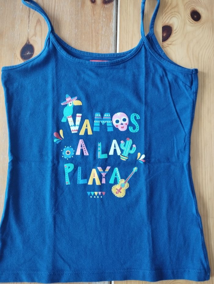 Vends débardeur "Vamos à la playa" Parfait état hormis des fils sur une bretelle (photo 2)