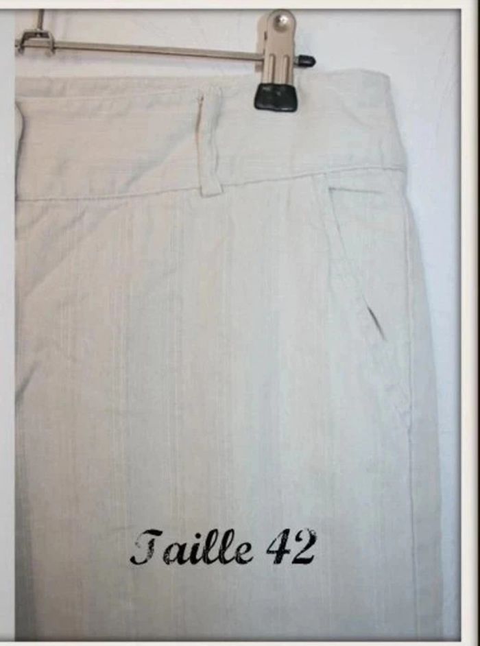 Pantacourt en lin beige finement rayé Cache Cache taille 42 - photo numéro 2