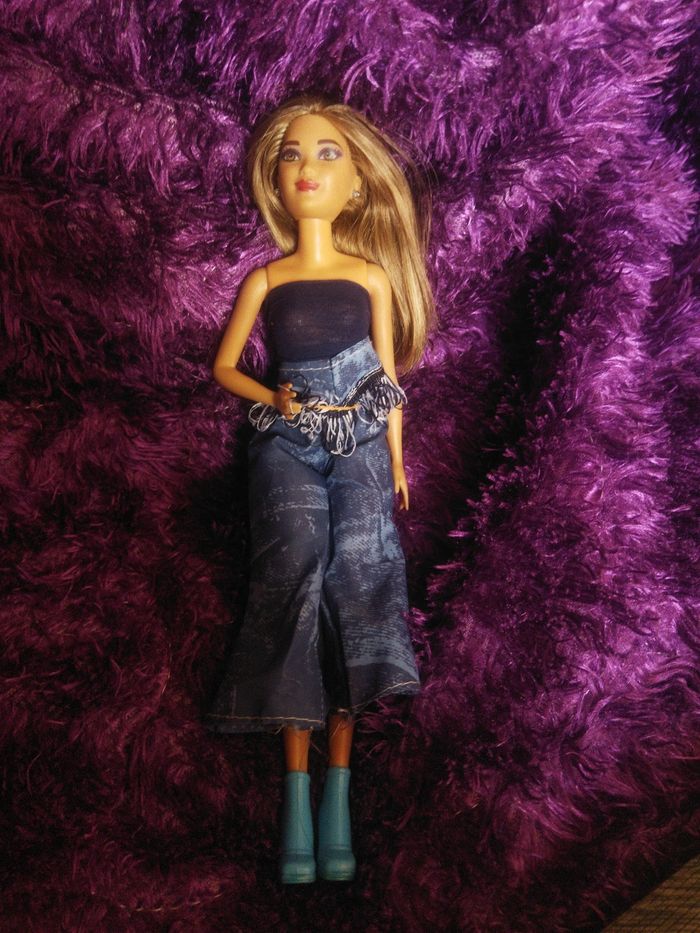 Poupée barbie souple très jolie très bon état avec haut fait a la main