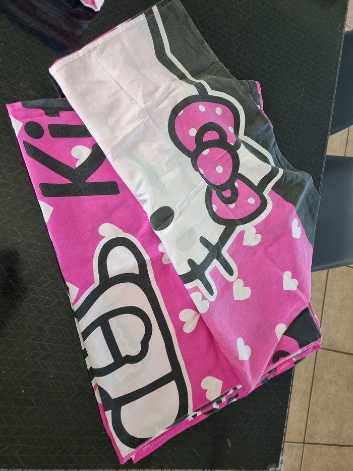 Parure Hello Kitty, taie d'oreiller et housse de couette, 100% polyester.