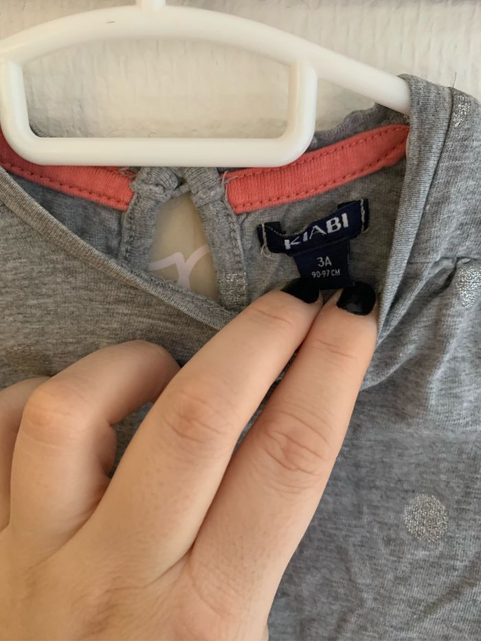 T-shirt fille gris à pois 3 ans kiabi - photo numéro 2