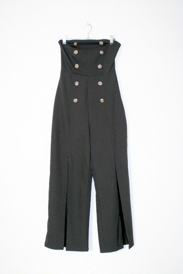 Combinaison bustier de chez Tally Weijl, taille S, 119cm de long, 35.5cm d'aisselle à aisselle, contour vynil pour la tenue du bustier, fermeture éclair sur le côté, fente à l'avant des jambes 340g