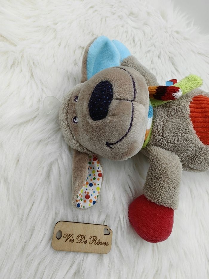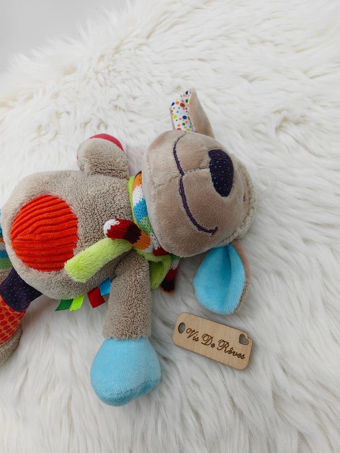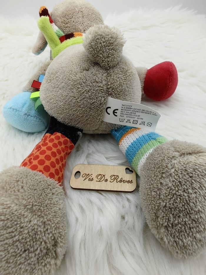 Doudou Mouton ou Chien Nicotoy gris/beige, ventre rouge, étiquettes - photo numéro 5