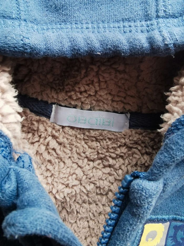 🌼 Obaïbi gilet veste doublée polaire capuche bleu garçon 3mois 60cm 🇨🇵crée en France 👶 - photo numéro 4