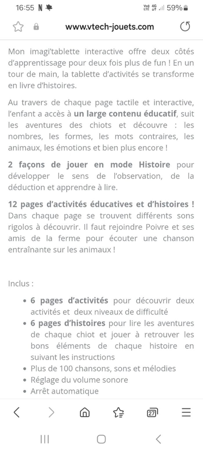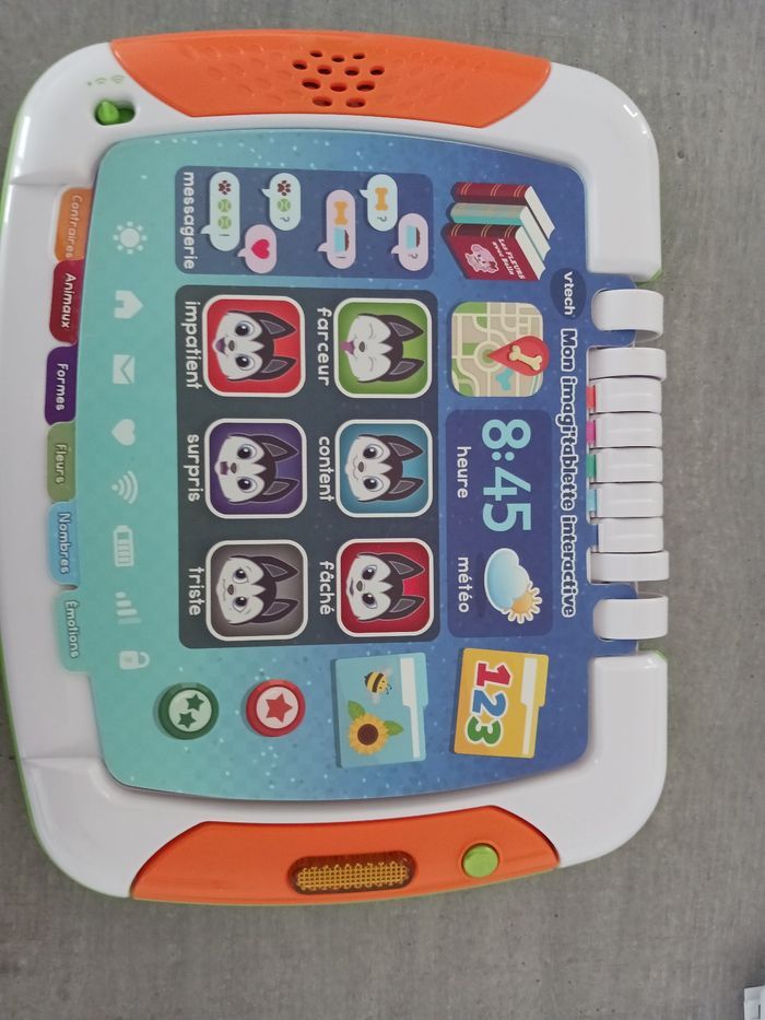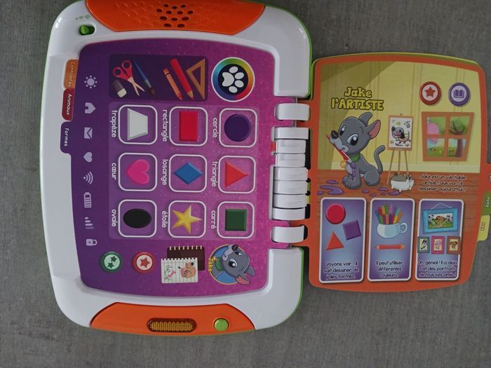 Tablette éducative de VTech de 2 à 5ans. Un côté avec des activités et l'autre des histoires. Description détaillée à la dernière photo. Très peu utilisée.