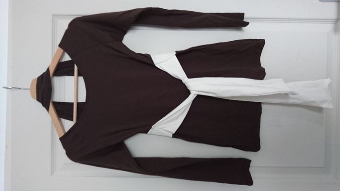 Haut manche longue cache cache, marron et crème, taille 1 - photo numéro 1