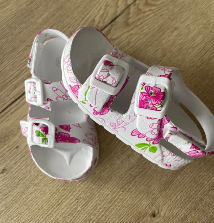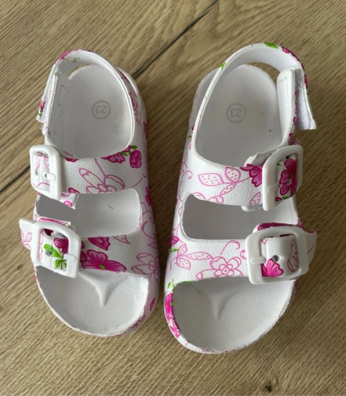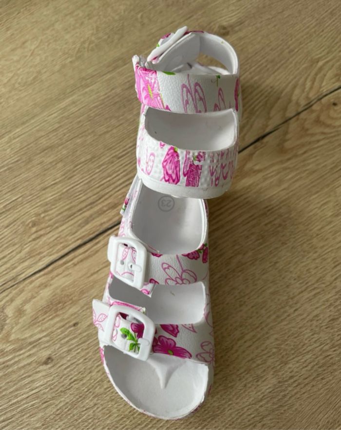 Sandales fille coloris blanc avec motifs roses Pointure : 23 Peu portées.