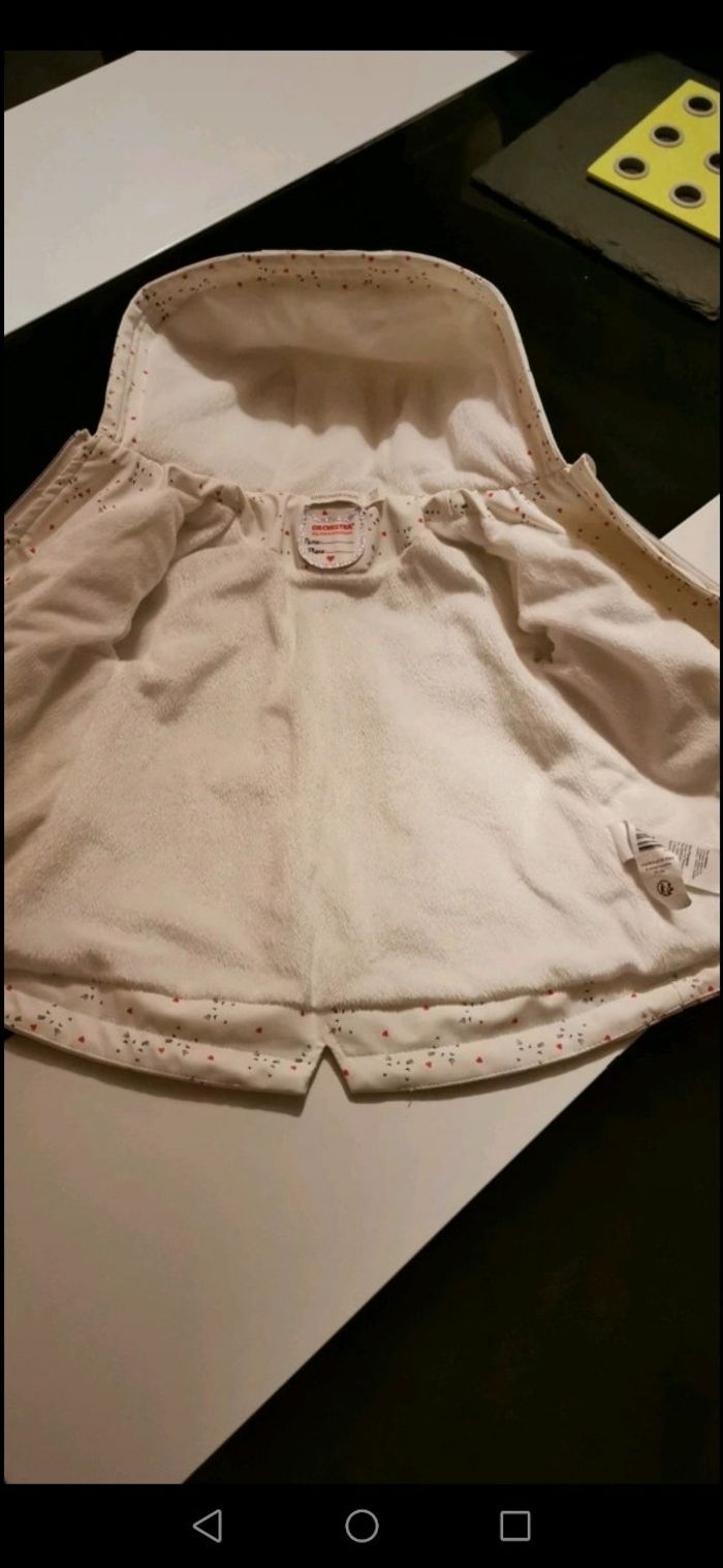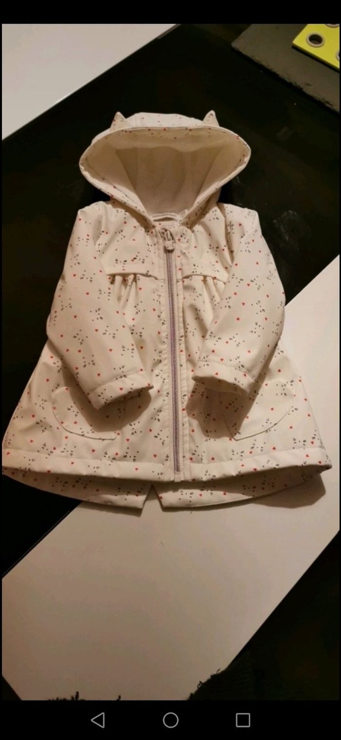 Manteau type imperméable blanc motifs chat avec des coeurs. Parfait état, taille 9 mois