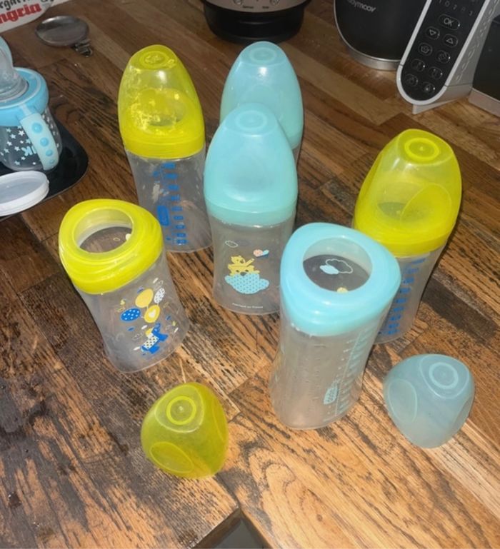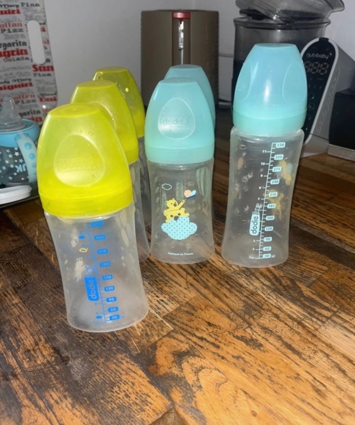 5 biberons Dodie sensation Vendus sans tétines 1 biberon de 330 ml et 4 de 270ml Servi à un enfant Il faudra les re stériliser