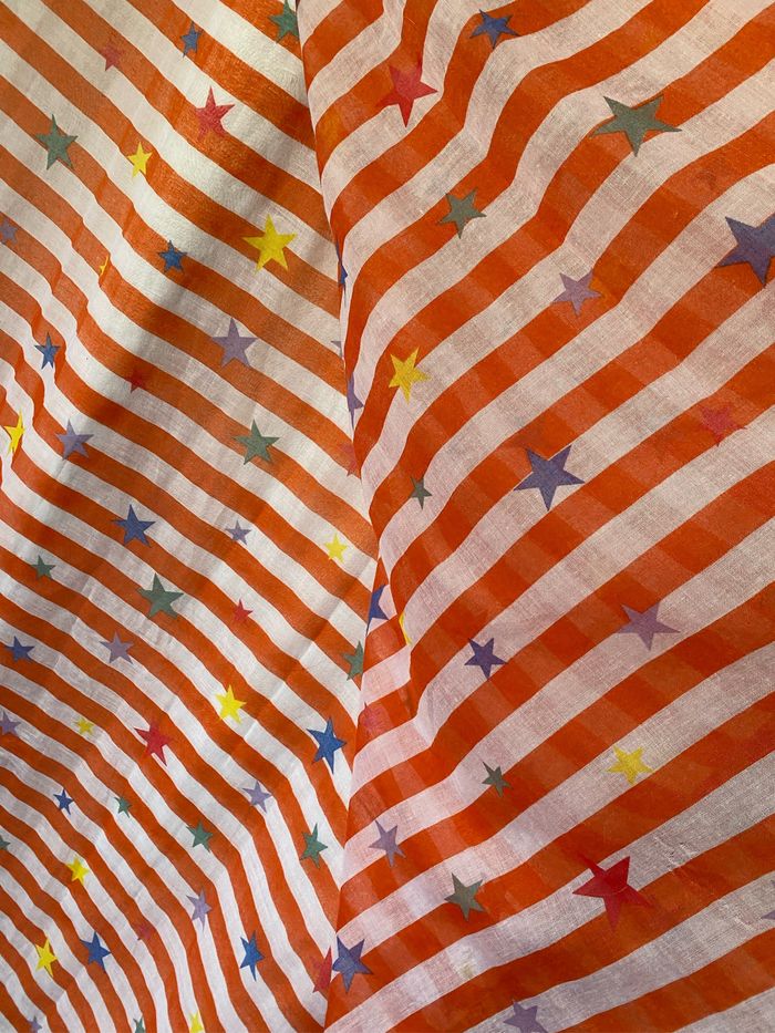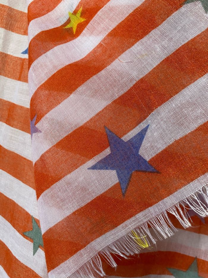 Grand foulard blanc et orange à rayures et étoiles multicolores Environ 100 x 200 cm