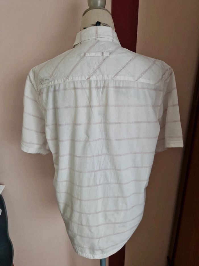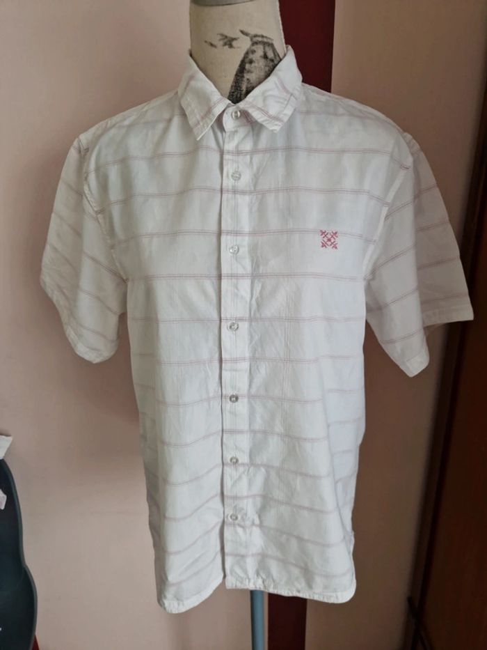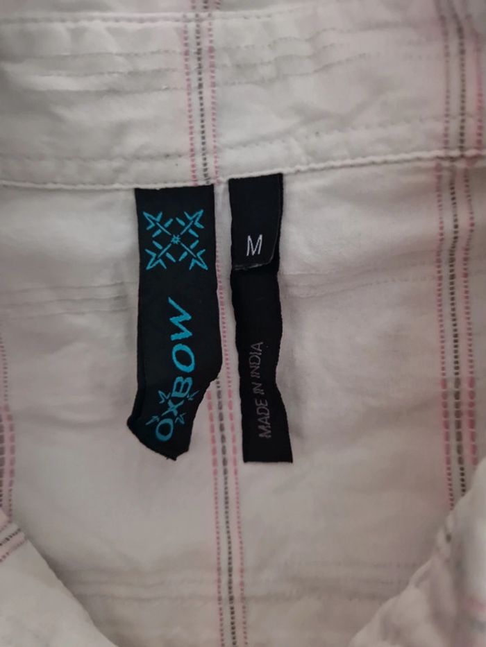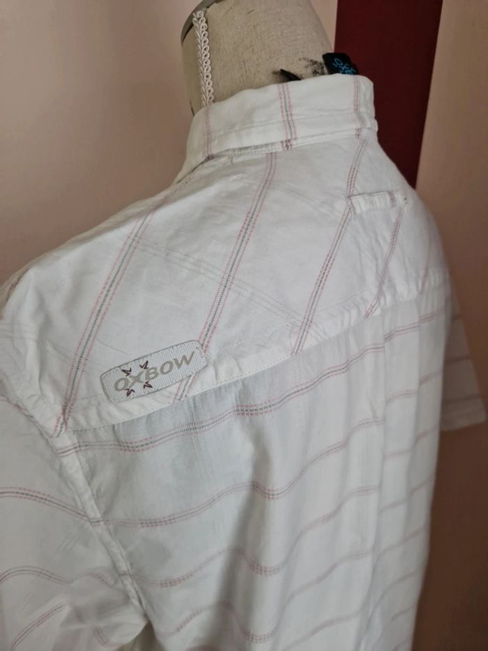 Chemise à manches courtes, blanche à carreaux roses et gris, taille M, de la marque Oxbow, en très bon état