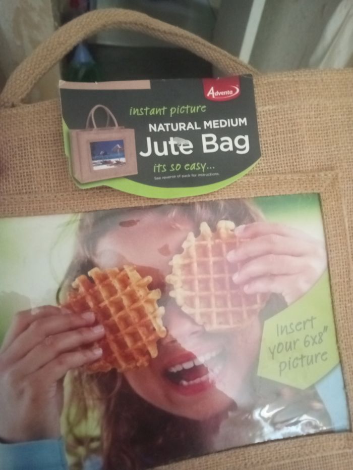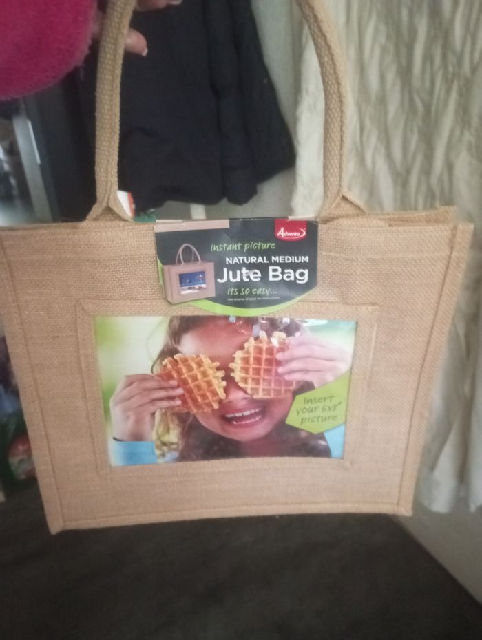 Sac shopping ouai autre en jute avec pochette sur le devant pour mettre photo ou autres