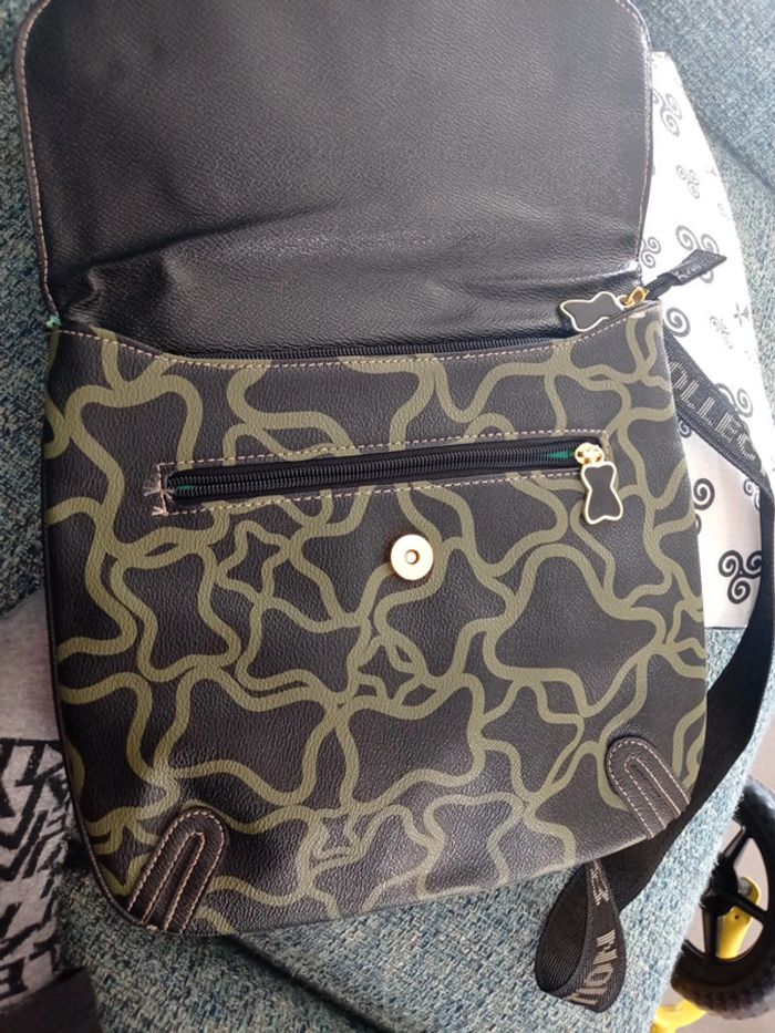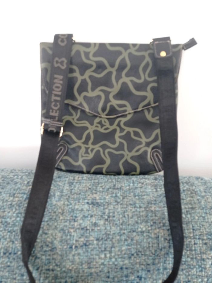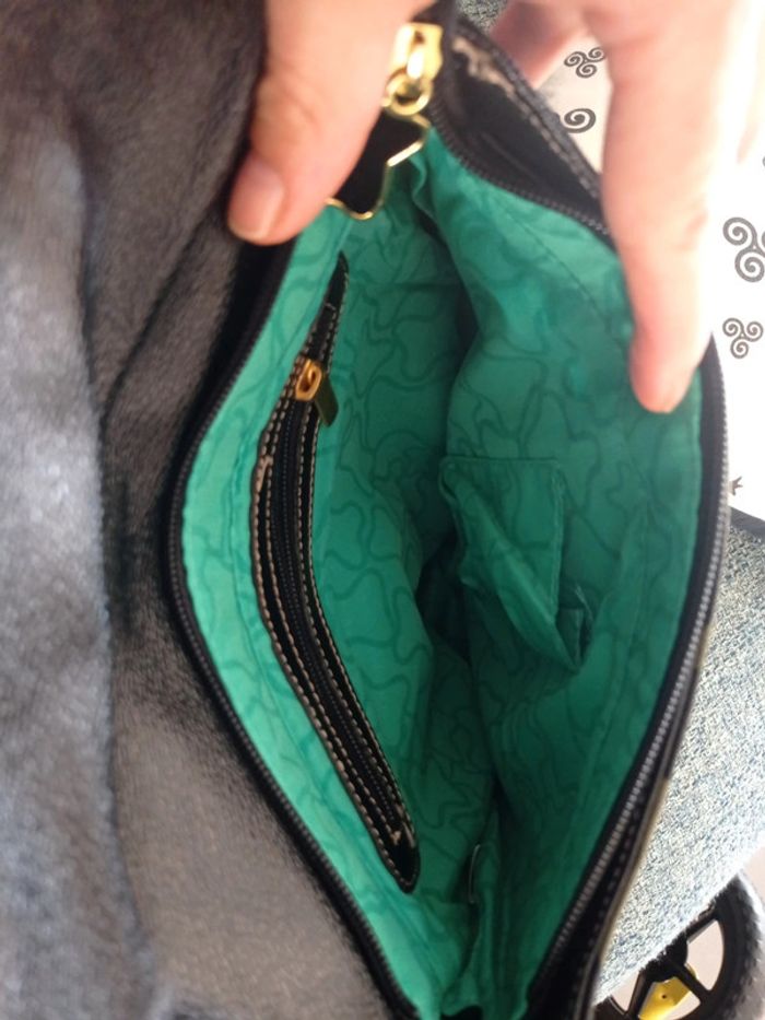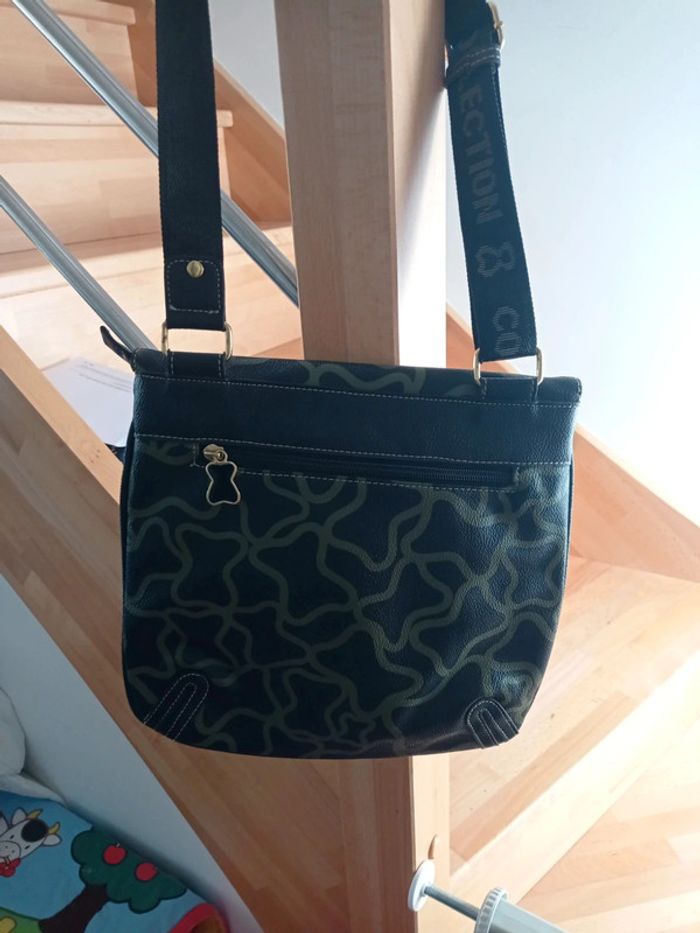 resté au placard. Il est dans un état impeccable. Jamais utilisé. Sac bandoulière. Une pochette à l'arrière. Une devant. Et à l'intérieur une petite pochette pour la carte bleue avec du rangement.