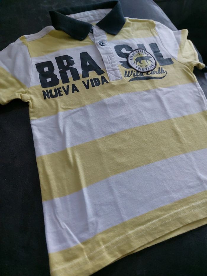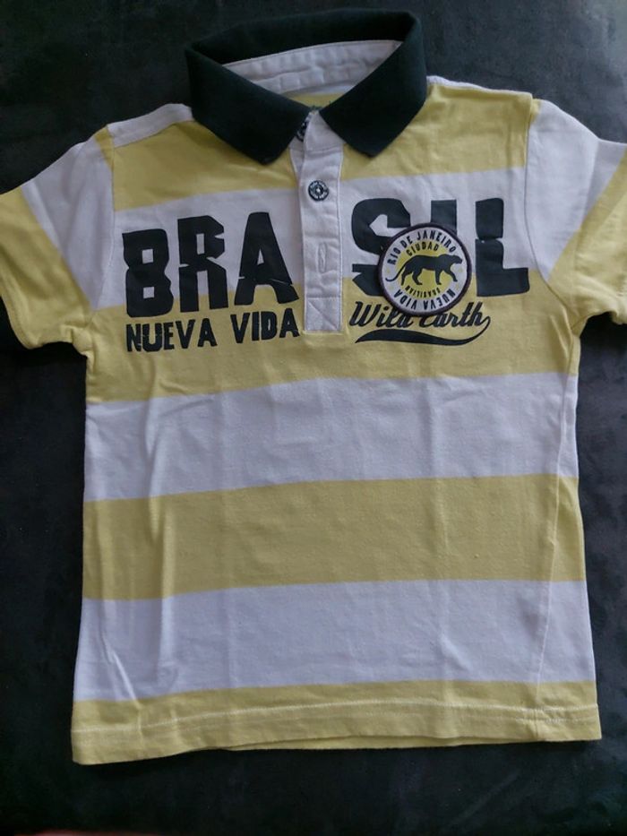 Vends t shirt polo vert anis et blanc col noir 6 ans gémonies #juhjuh6ans