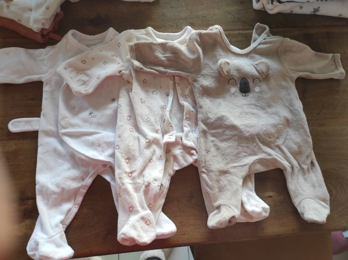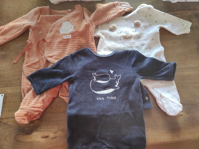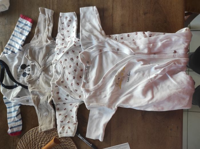 4 bodys coton avec pied 3 bodys coton sans pied 1 bonnet coton 9 pyjamas Très bon état