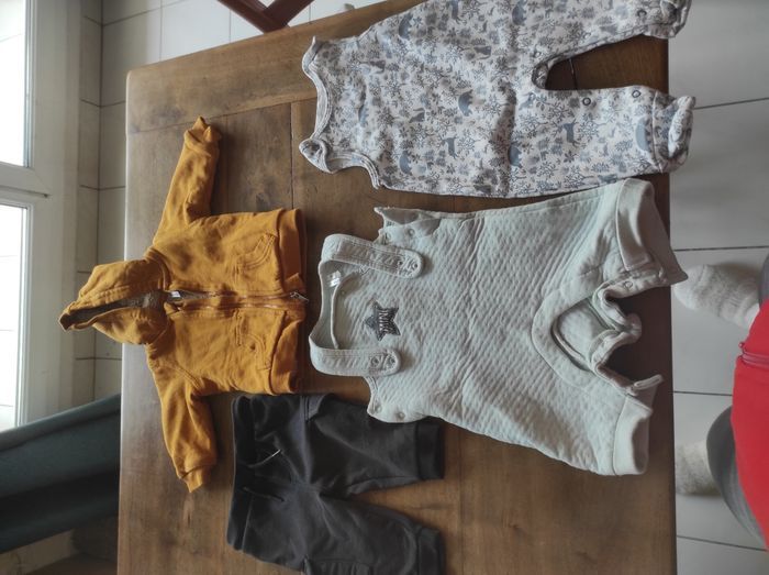 1 ensemble boudchou 1 ensemble orchestra 1 ensemble obaidi neuf 2 salopettes (vert baudet et orchestra) 1 pantalon jogging orchestra 1 veste orchestra