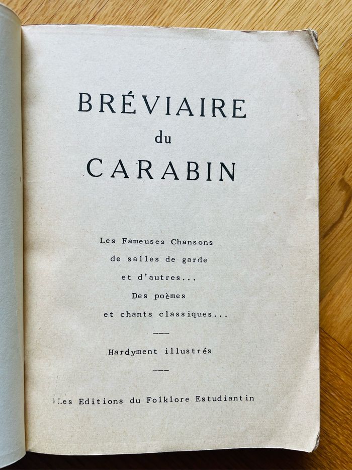 Rare Le Bréviaire du Carabin : Les fameuses chansons de salle de gardes, hardyment illustrés.