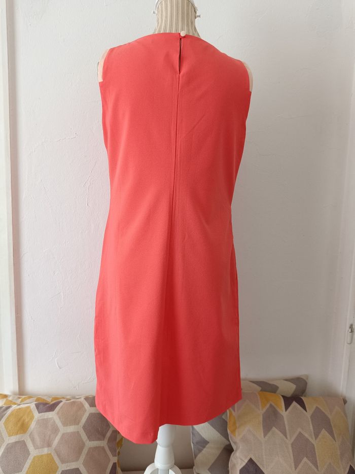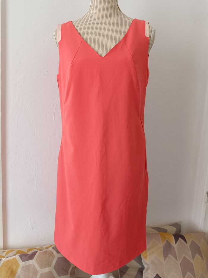 Robe col V en taille 38, de la marque Phildar. A noter un point de couture à faire à l'intérieur de la robe près de la fermeture, ça ne se voit pas du tout de l'extérieur. Petit prix