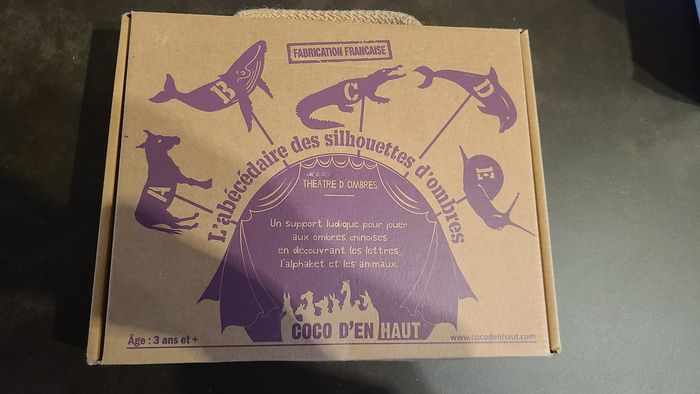 Abécédaire des animaux COCO D'EN HAUT Jeux d'ombres chinoises éducatif. 3 jeux progressifs pour découvrir les lettres et les animaux en jouant aux ombres chinoises et en racontant des histoires. Ce jeu évolutif, aux dessins originaux fait de l’apprentissage de l’alphabet un vrai moment ludique, grâce aux ombres chinoises. Les lettres s’associent visuellement aux silhouettes des animaux, elles sont facilement mémorisées. 3 jeux d’associations et un jeu d’ombres chinoises : idéal pour jouer en famille, raconter des histoires et apprendre les lettres de l’alphabet.