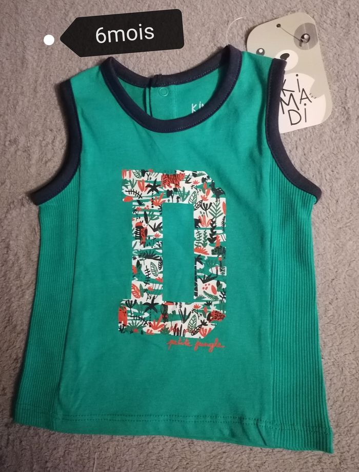 Débardeur bébé garçon Marque Kimadi Taille 6mois Couleur vert 2 bouton derrière clipse 100% coton Neuf avec étiquette 4€