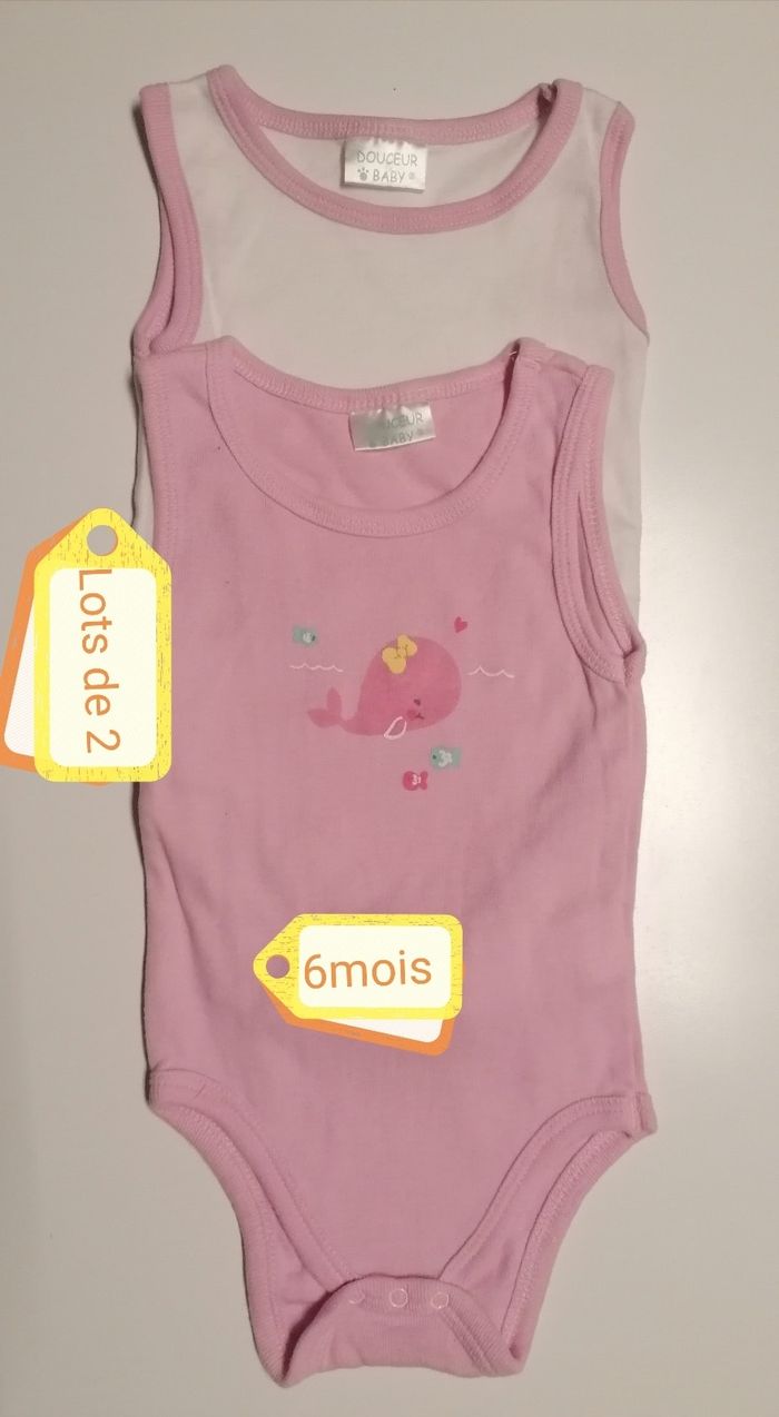Lots de 2 bodies filles Douceur baby. 6mois rose/blanc Portée Les 2: 2€