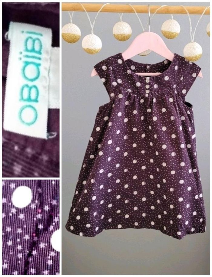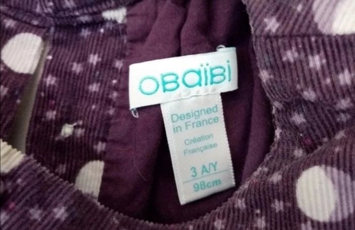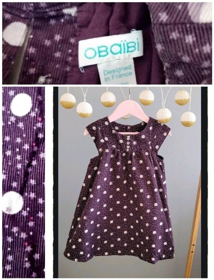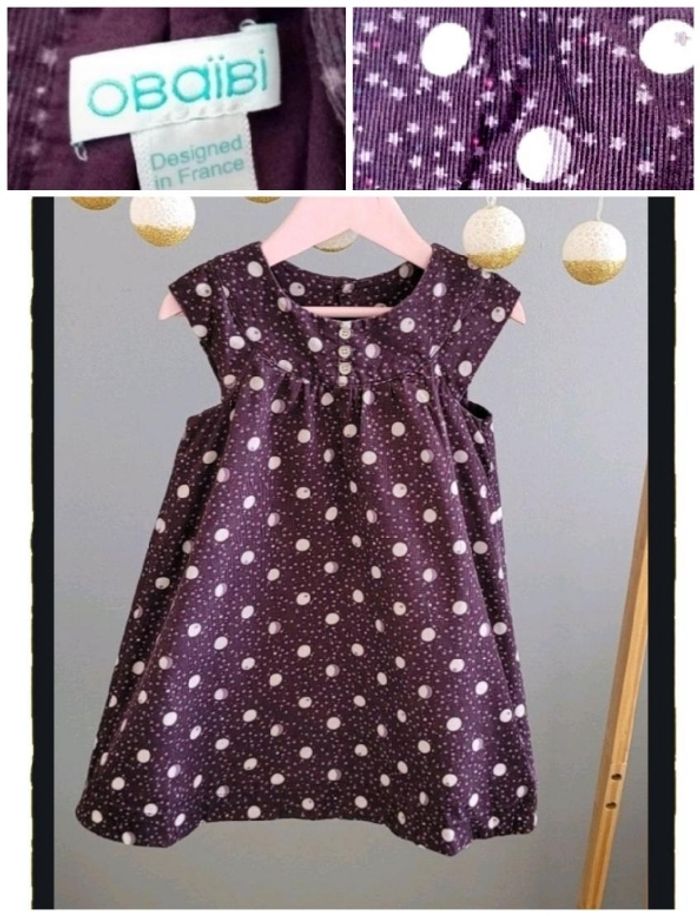 3 ans obaibi robe velour violet a pois blanc autom hiver /Excellent état